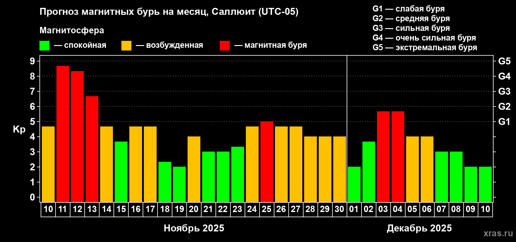 Прогноз магнитных бурь в Саллюите — 10 ноября 2025 года