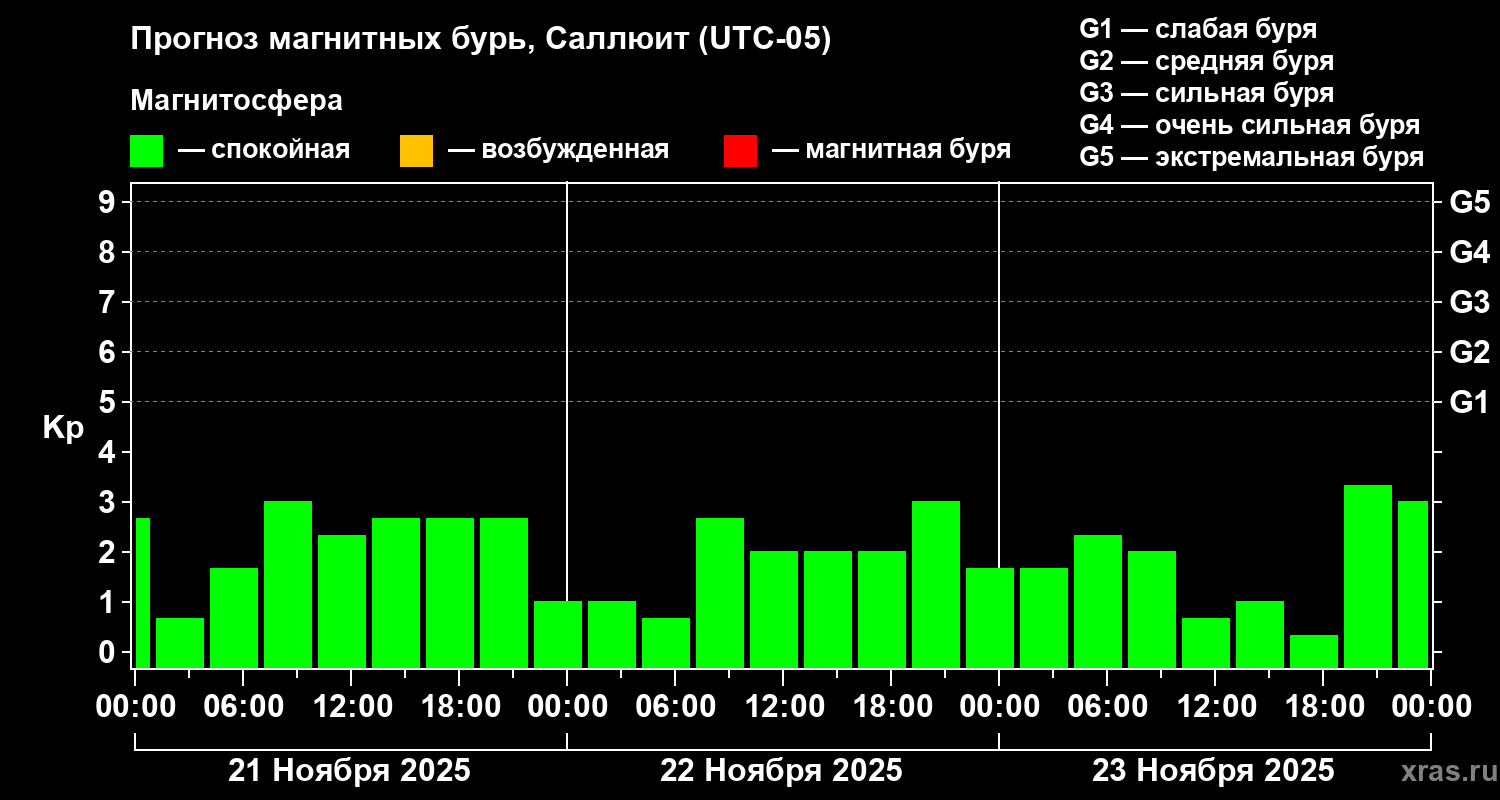 Прогноз магнитных бурь в Саллюите на 21 ноября 2025 года