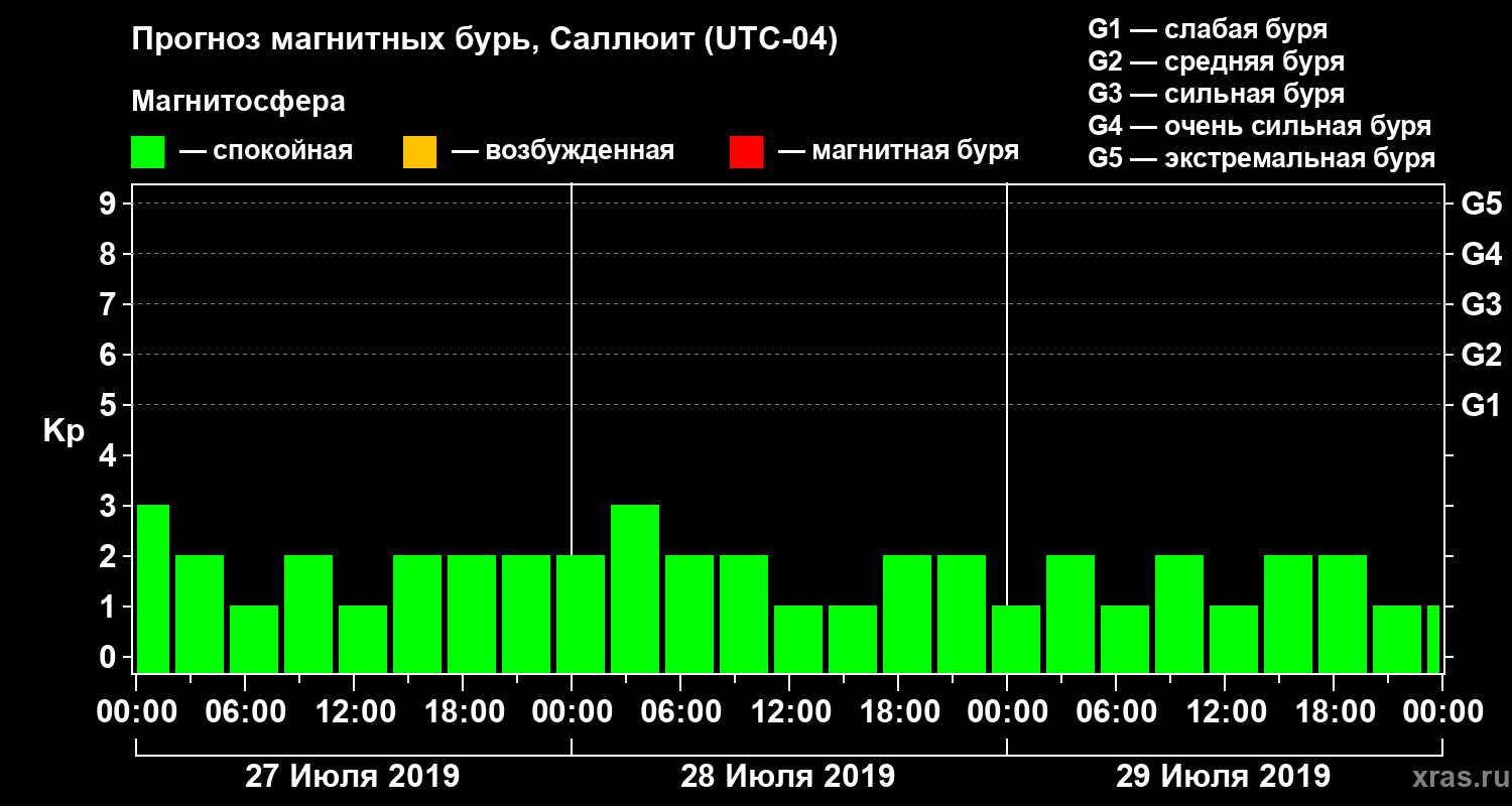 Прогноз магнитных бурь в Саллюите — 27 июля 2019 года