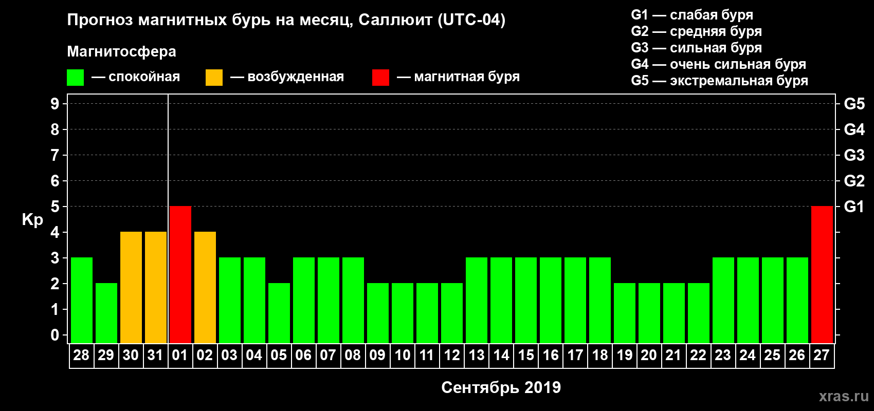 Прогноз магнитных бурь в Саллюите — 28 августа 2019 года