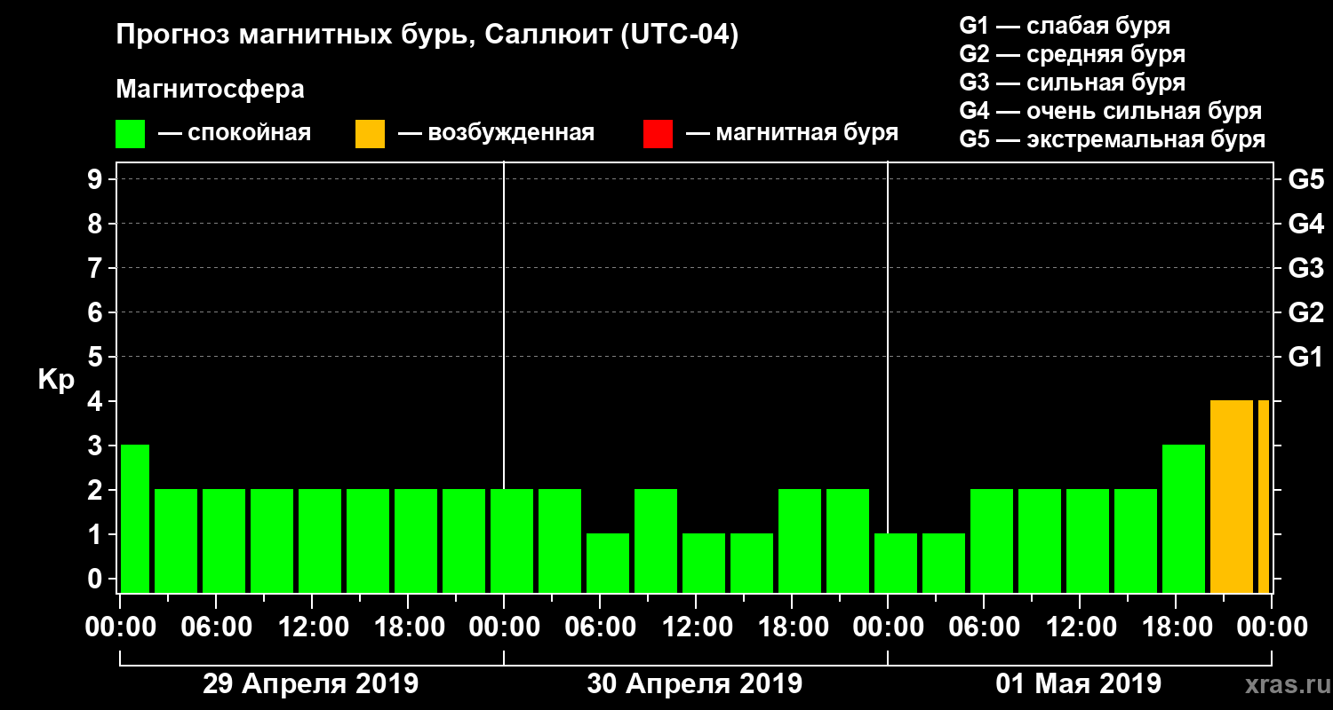 Прогноз магнитных бурь в Саллюите на 29 апреля 2019 года