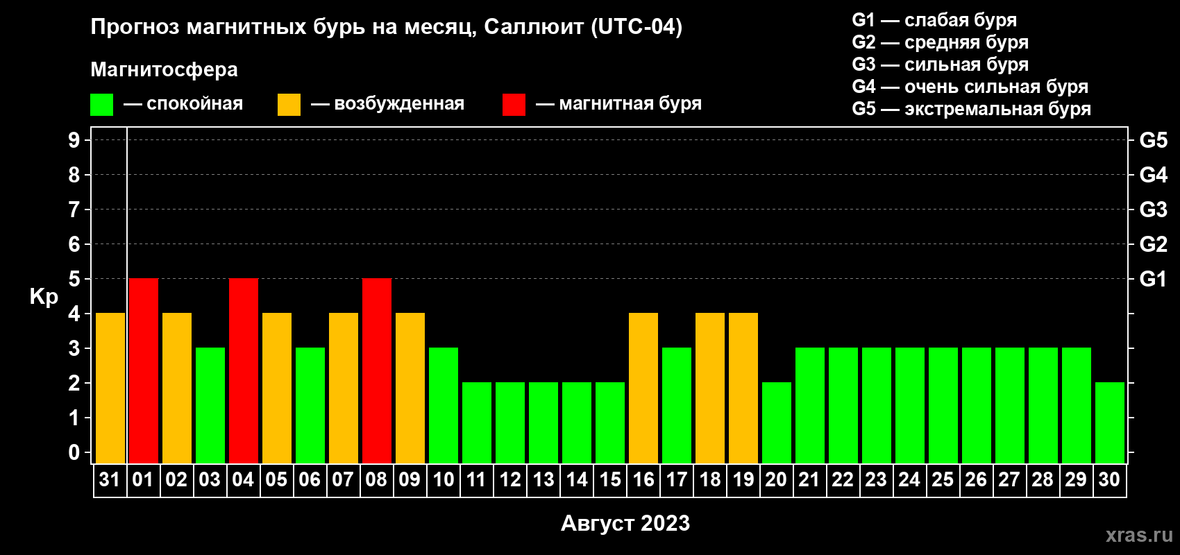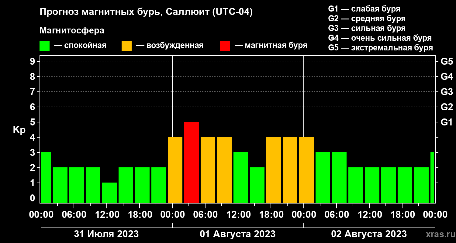Прогноз магнитных бурь в Саллюите — 31 июля 2023 года