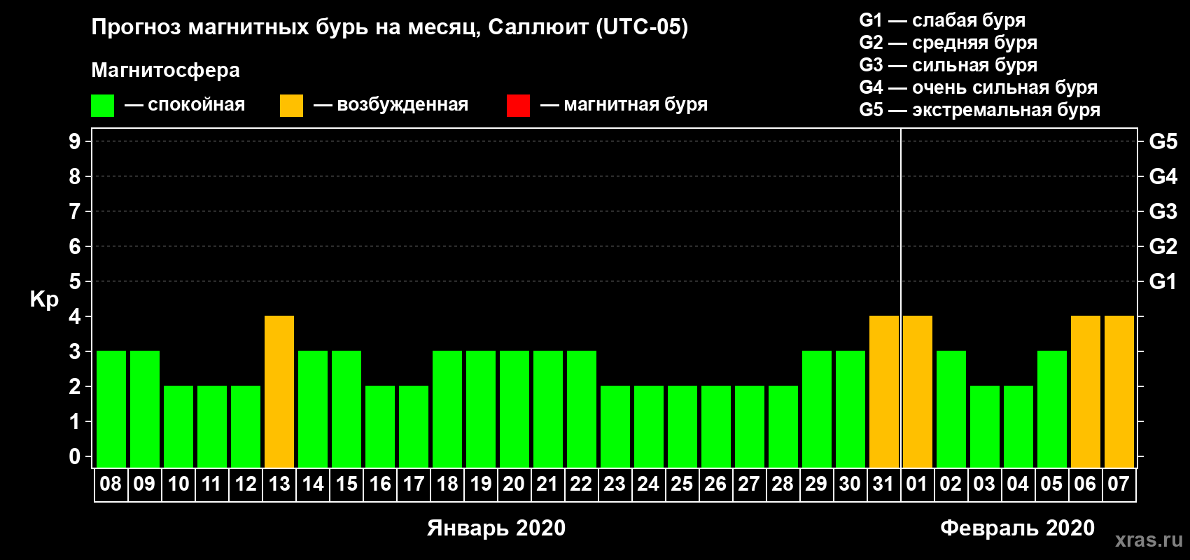 Прогноз магнитных бурь в Саллюите — 8 января 2020 года