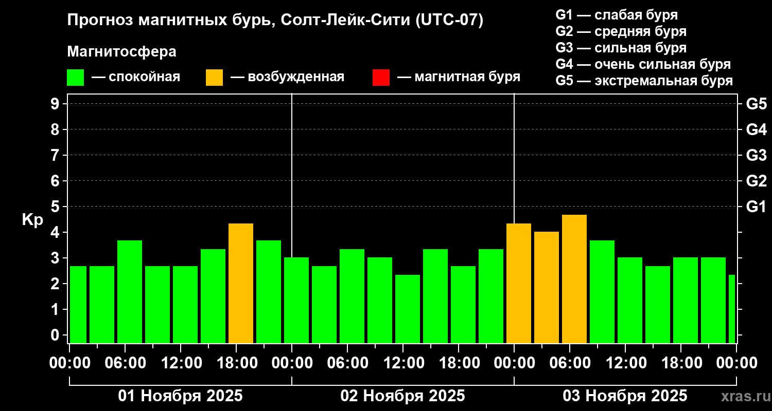 Прогноз магнитных бурь Солт-Лейк-Сити на 1 ноября 2025 года