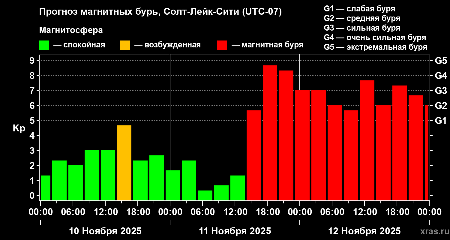 Прогноз магнитных бурь Солт-Лейк-Сити — 10 ноября 2025 года