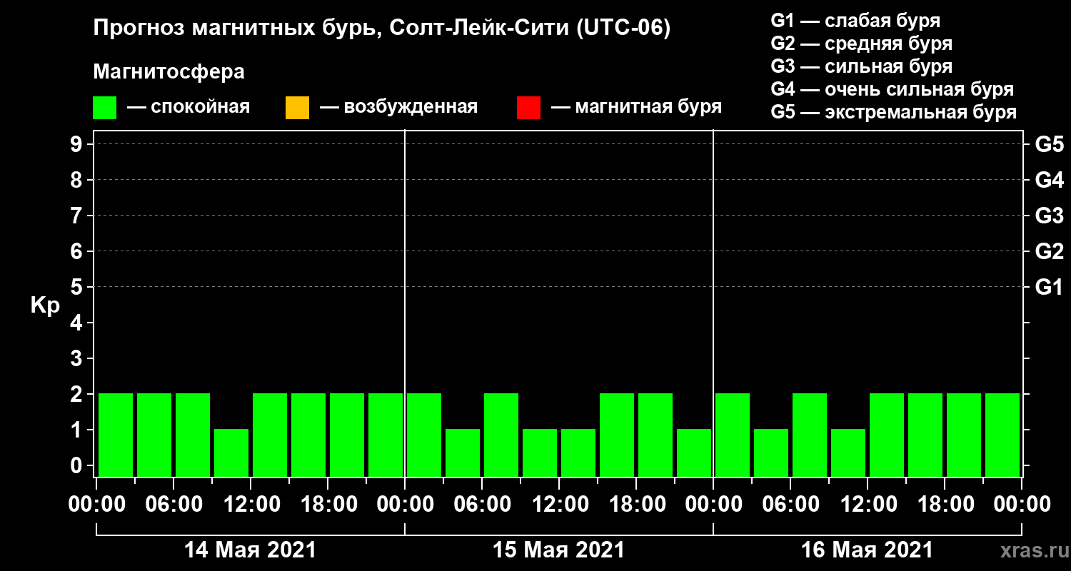 Прогноз магнитных бурь Солт-Лейк-Сити — 14 мая 2021 года