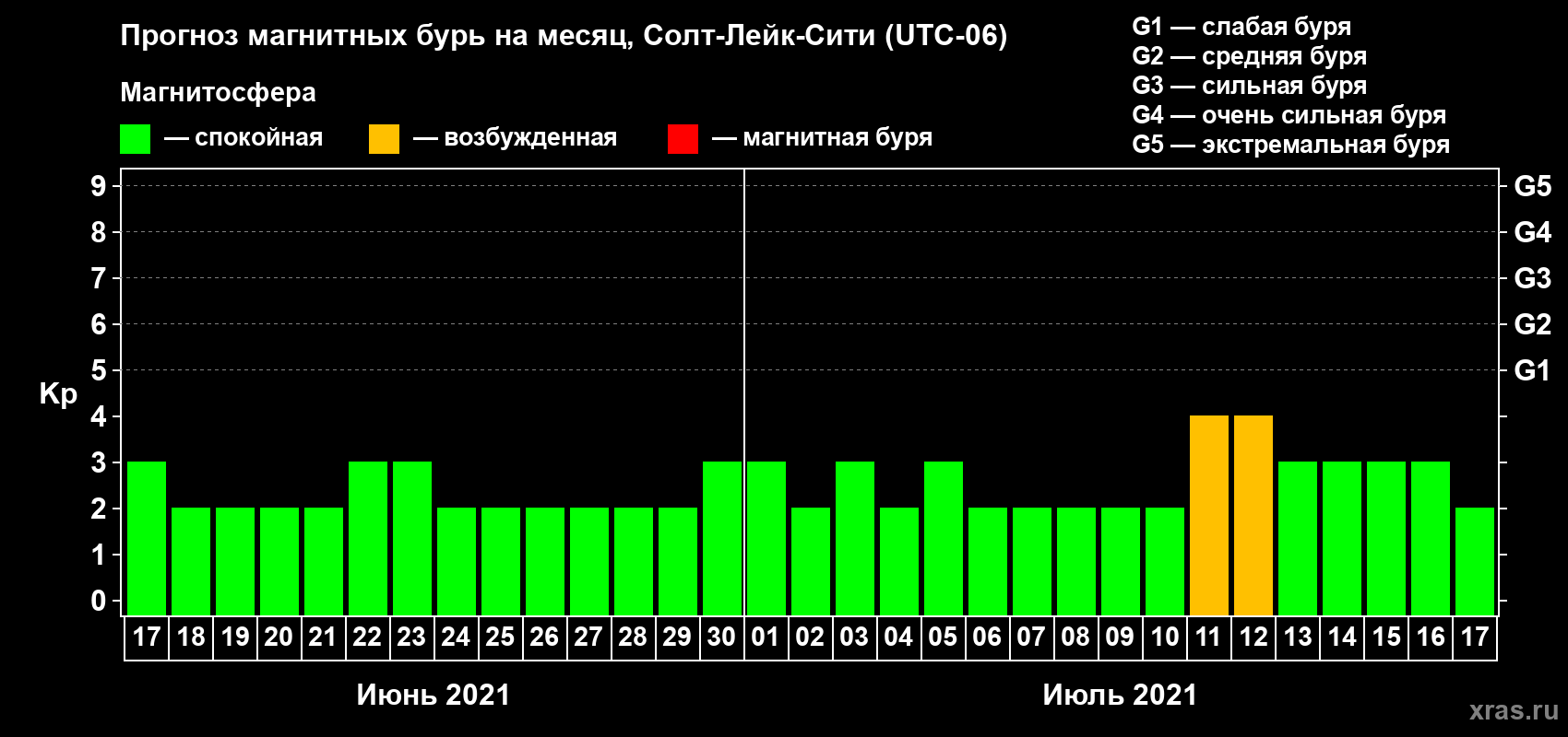 Прогноз магнитных бурь Солт-Лейк-Сити на 17 июня 2021 года
