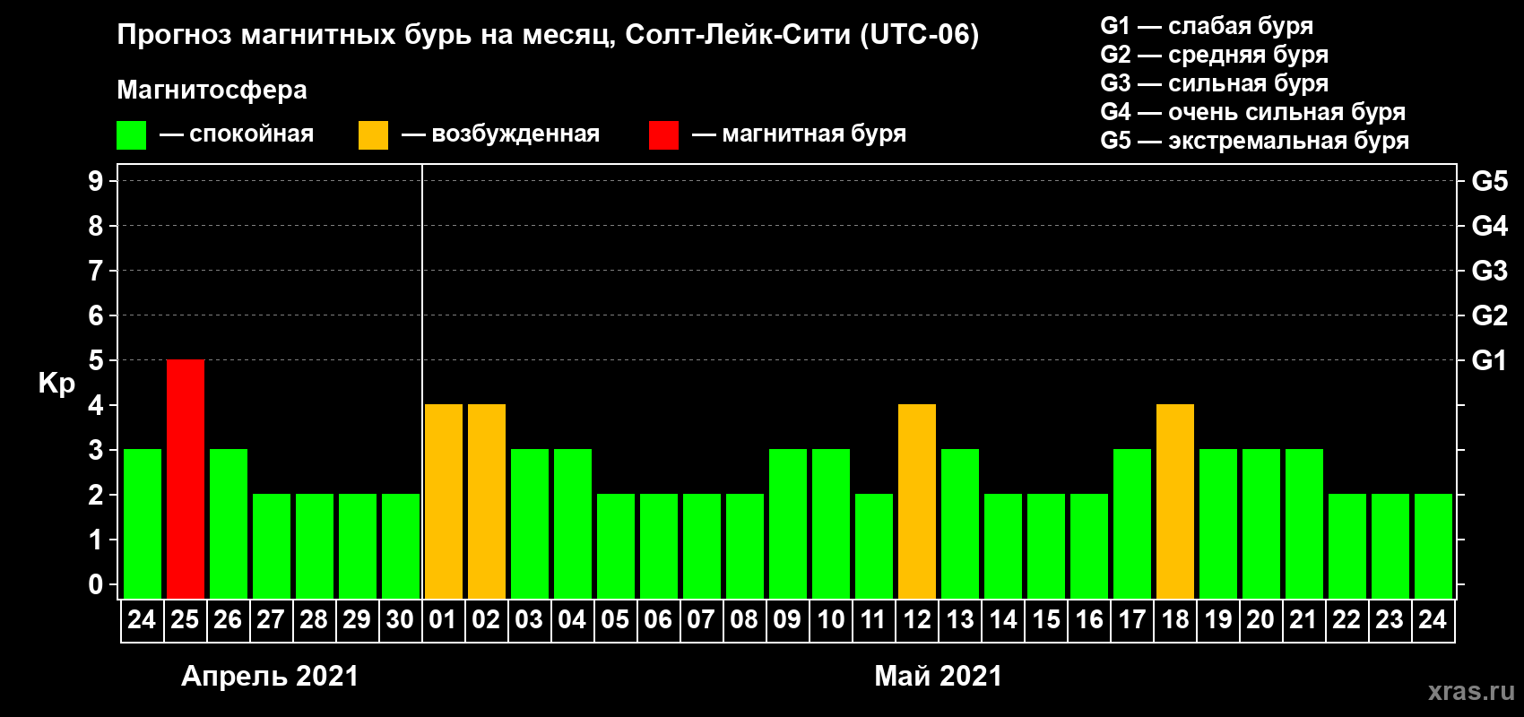 Прогноз магнитных бурь Солт-Лейк-Сити на 24 апреля 2021 года