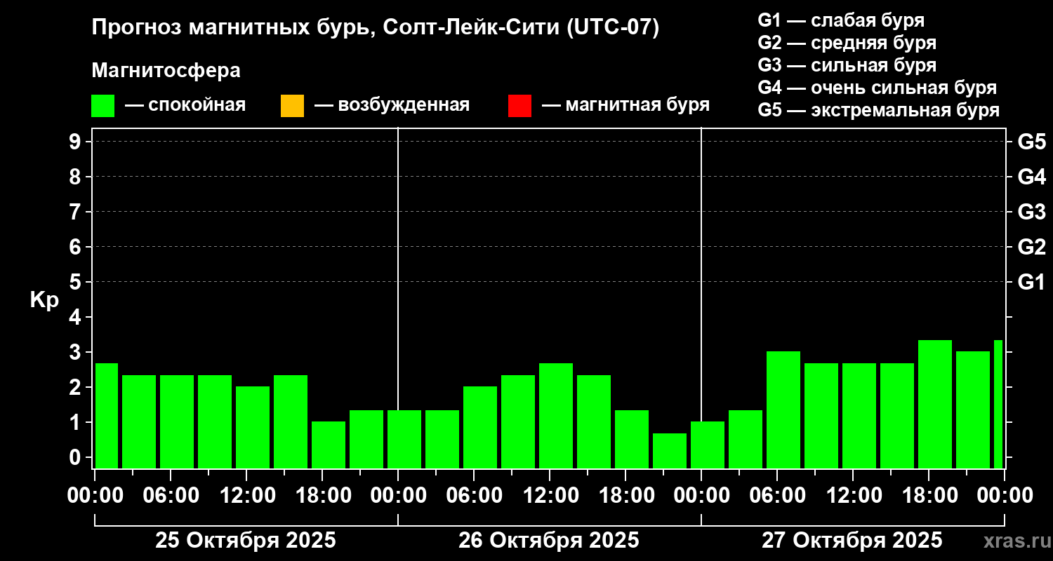 Прогноз магнитных бурь Солт-Лейк-Сити на 25 октября 2025 года