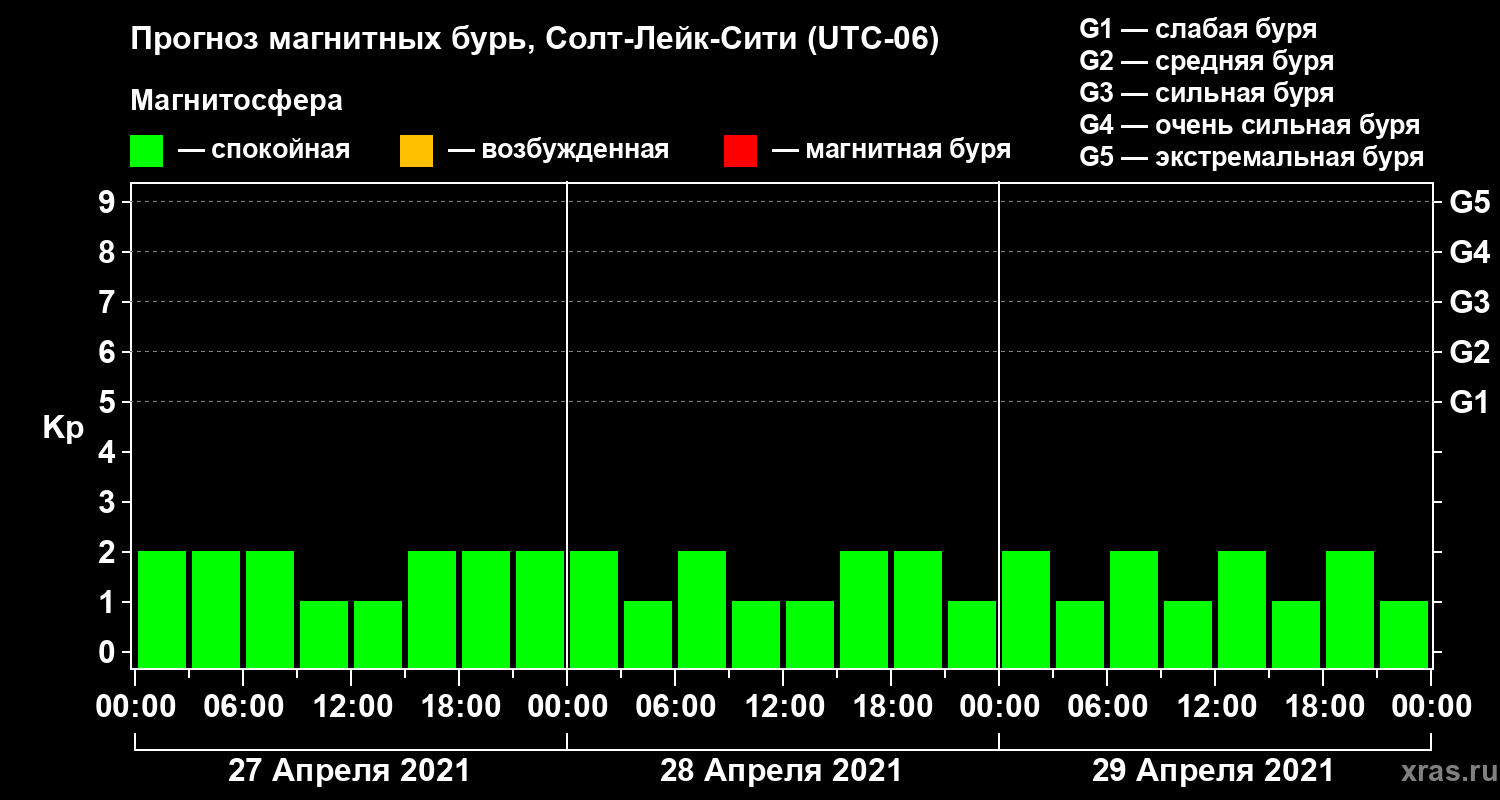 Прогноз магнитных бурь Солт-Лейк-Сити на 27 апреля 2021 года