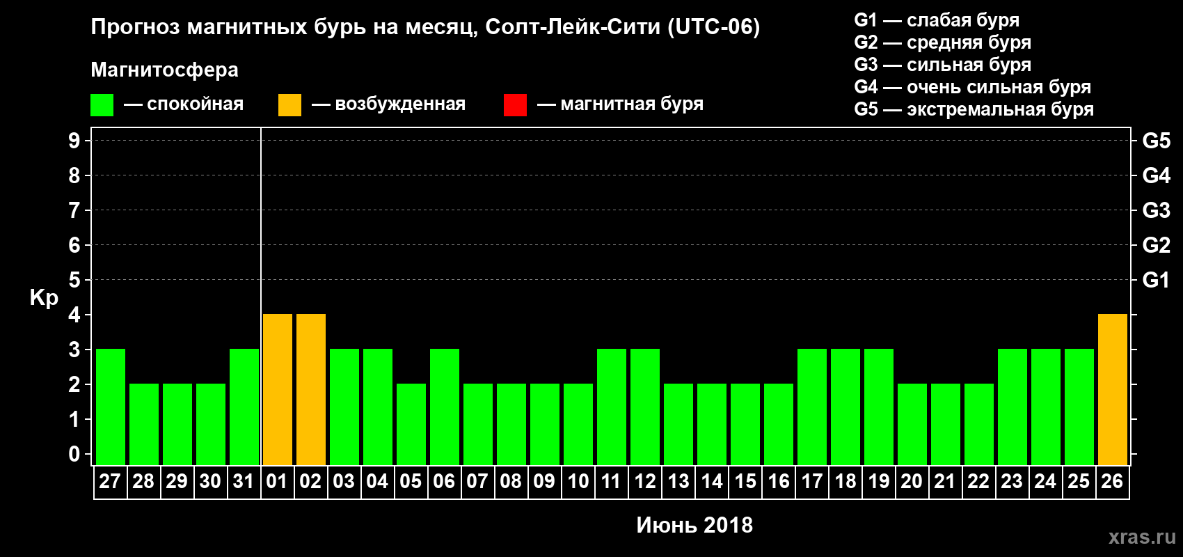 Прогноз магнитных бурь Солт-Лейк-Сити — 27 мая 2018 года