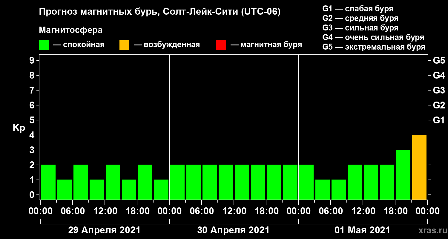 Прогноз магнитных бурь Солт-Лейк-Сити на 29 апреля 2021 года