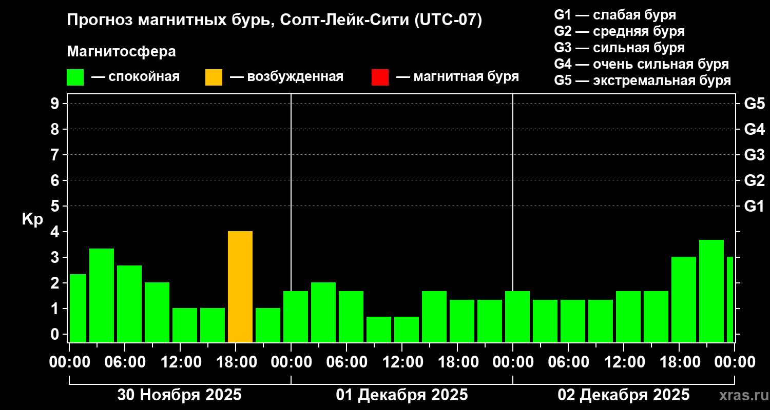 Прогноз магнитных бурь Солт-Лейк-Сити на 30 ноября 2025 года