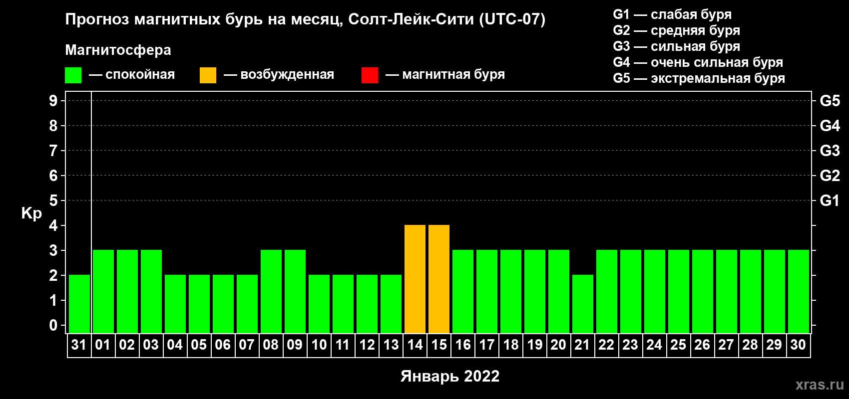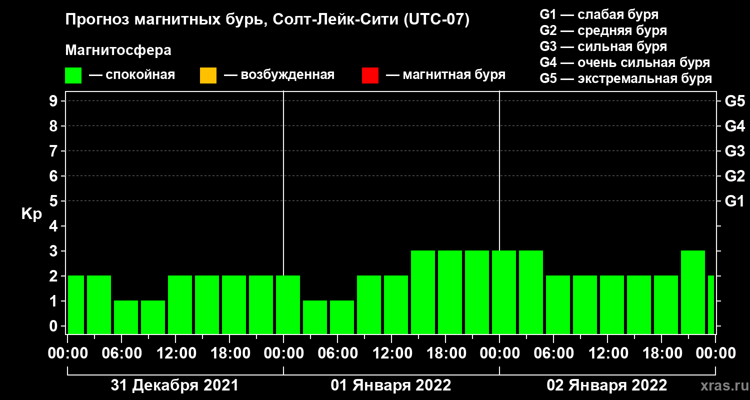Прогноз магнитных бурь Солт-Лейк-Сити на 31 декабря 2021 года