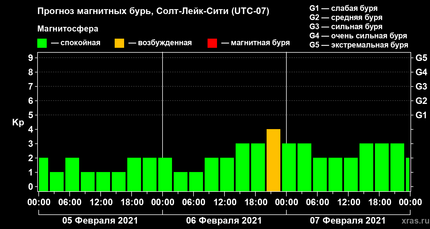 Прогноз магнитных бурь Солт-Лейк-Сити на 5 февраля 2021 года