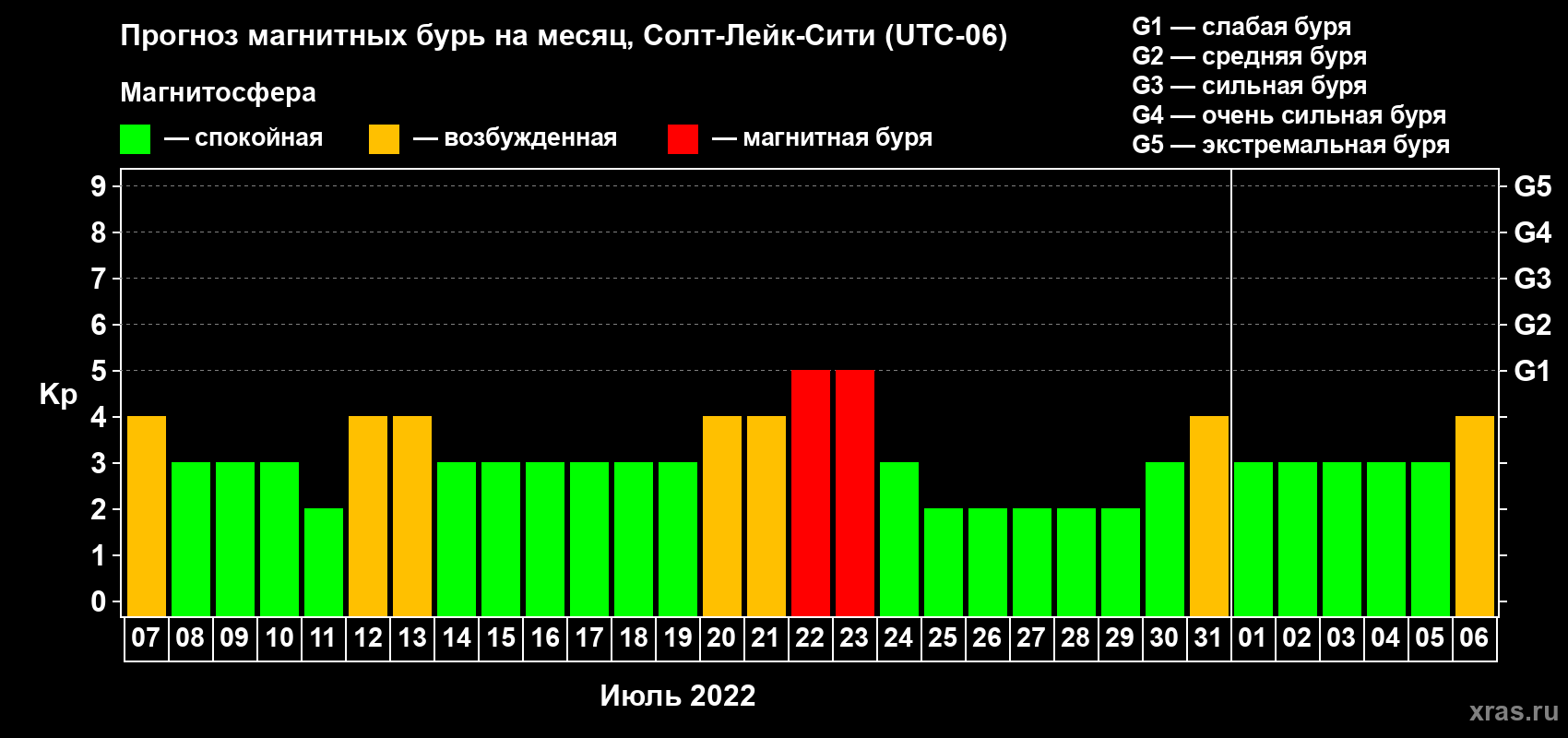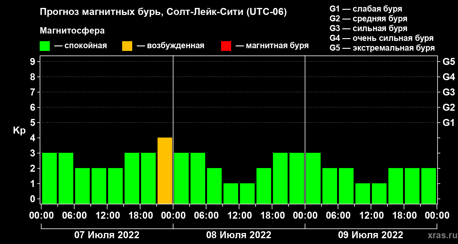 Прогноз магнитных бурь Солт-Лейк-Сити на 7 июля 2022 года