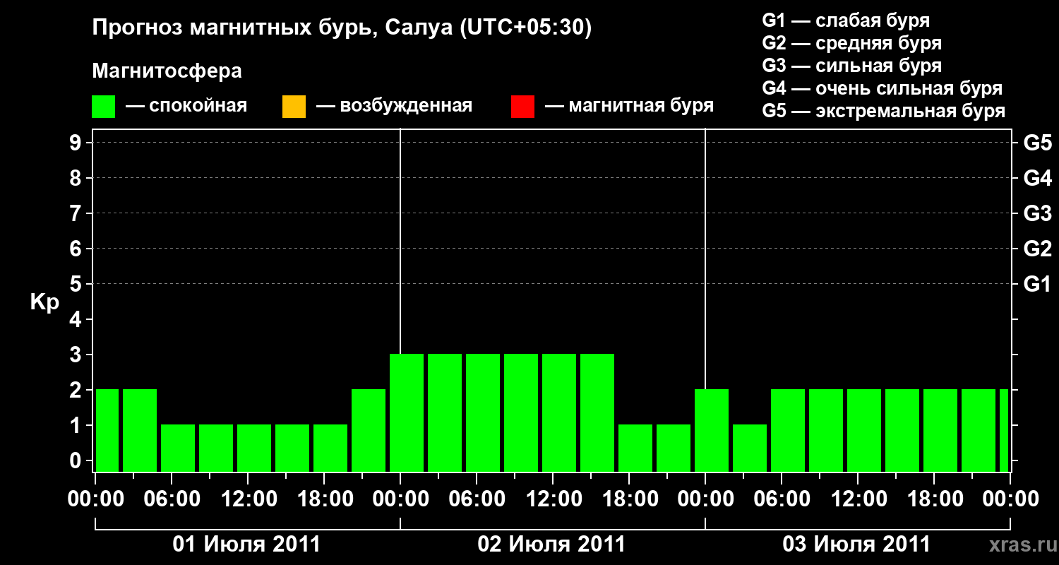 Прогноз магнитных бурь в Салуе — 1 июля 2011 года