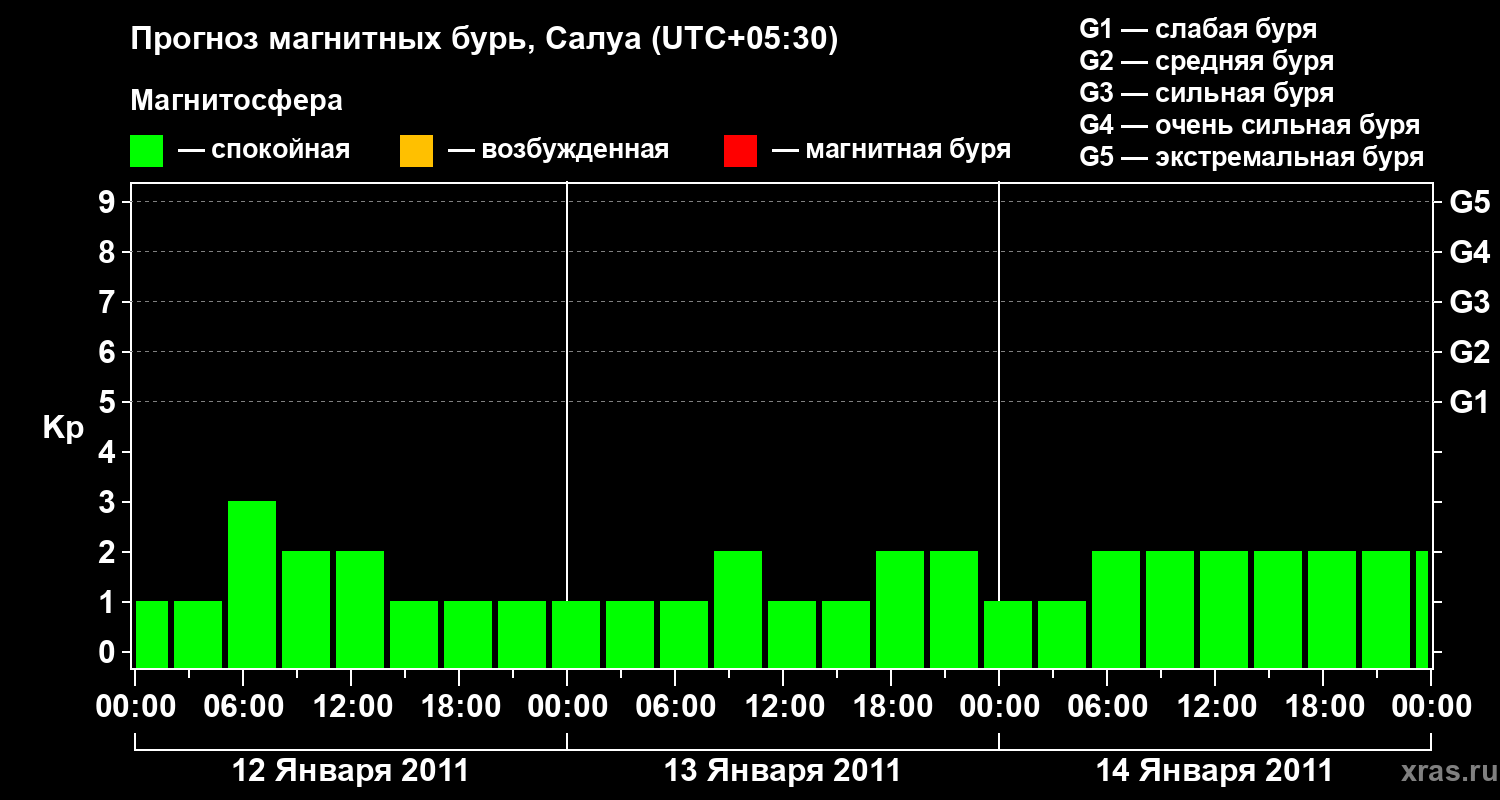 Прогноз магнитных бурь в Салуе — 12 января 2011 года