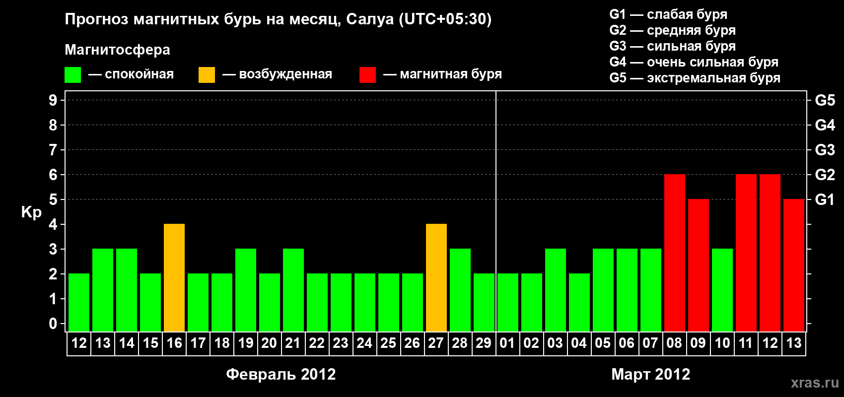 Прогноз магнитных бурь в Салуе — 12 февраля 2012 года