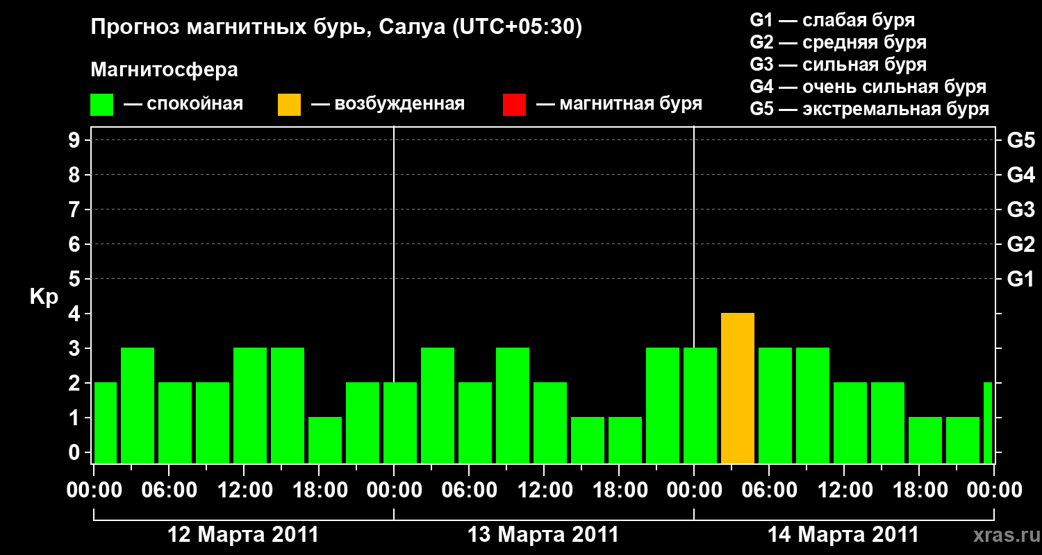 Прогноз магнитных бурь в Салуе — 12 марта 2011 года