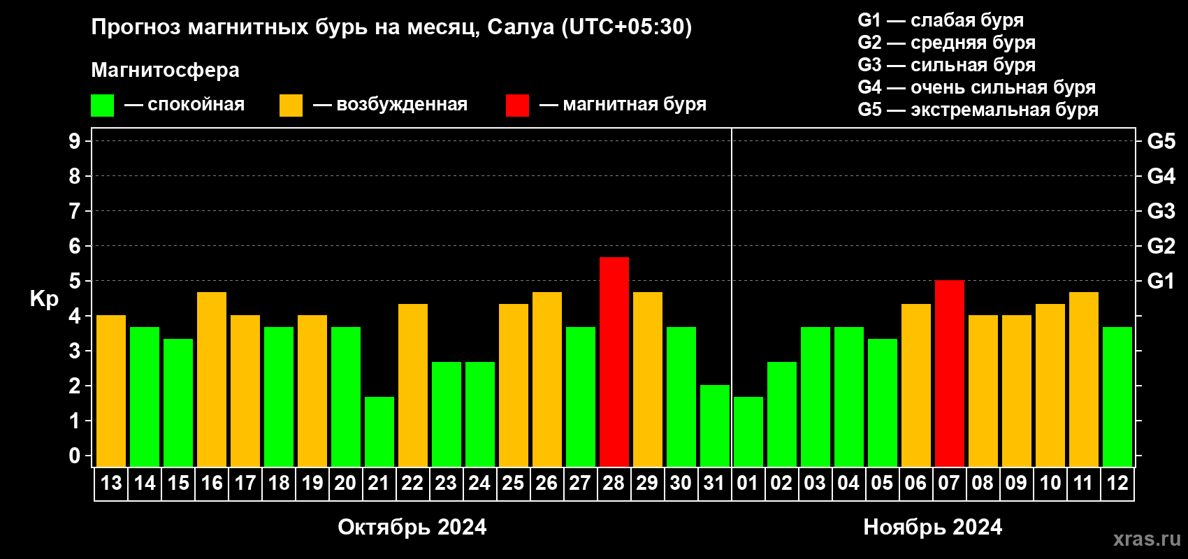 Прогноз магнитных бурь в Салуе — 13 октября 2024 года
