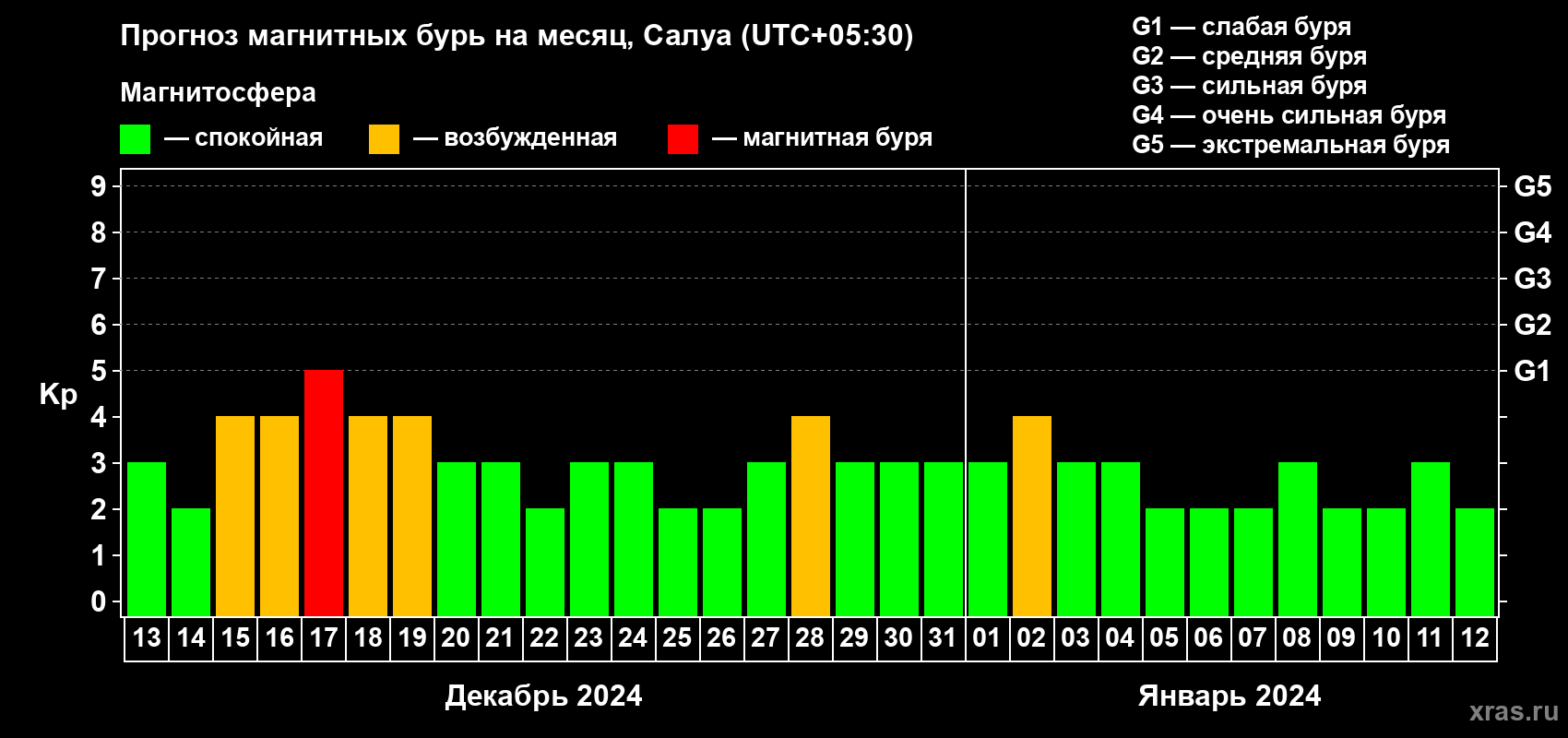 Прогноз магнитных бурь в Салуе — 13 декабря 2023 года