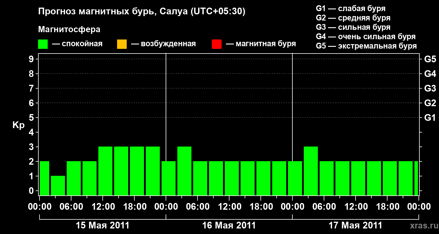 Прогноз магнитных бурь в Салуе — 15 мая 2011 года