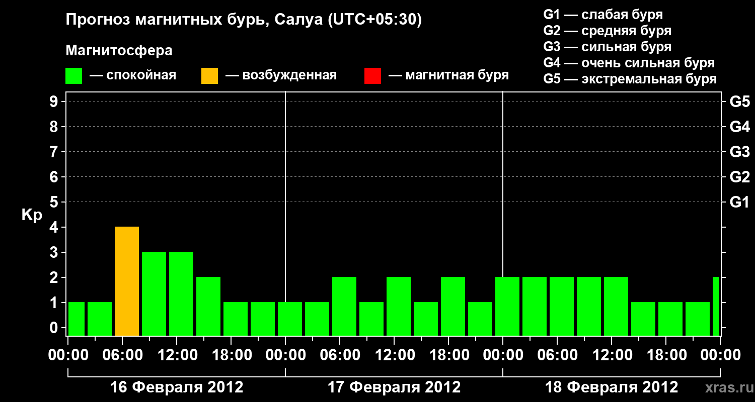 Прогноз магнитных бурь в Салуе — 16 февраля 2012 года