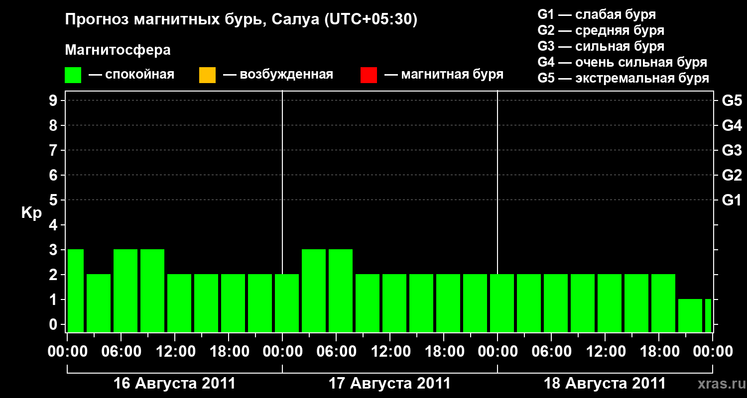 Прогноз магнитных бурь в Салуе — 16 августа 2011 года