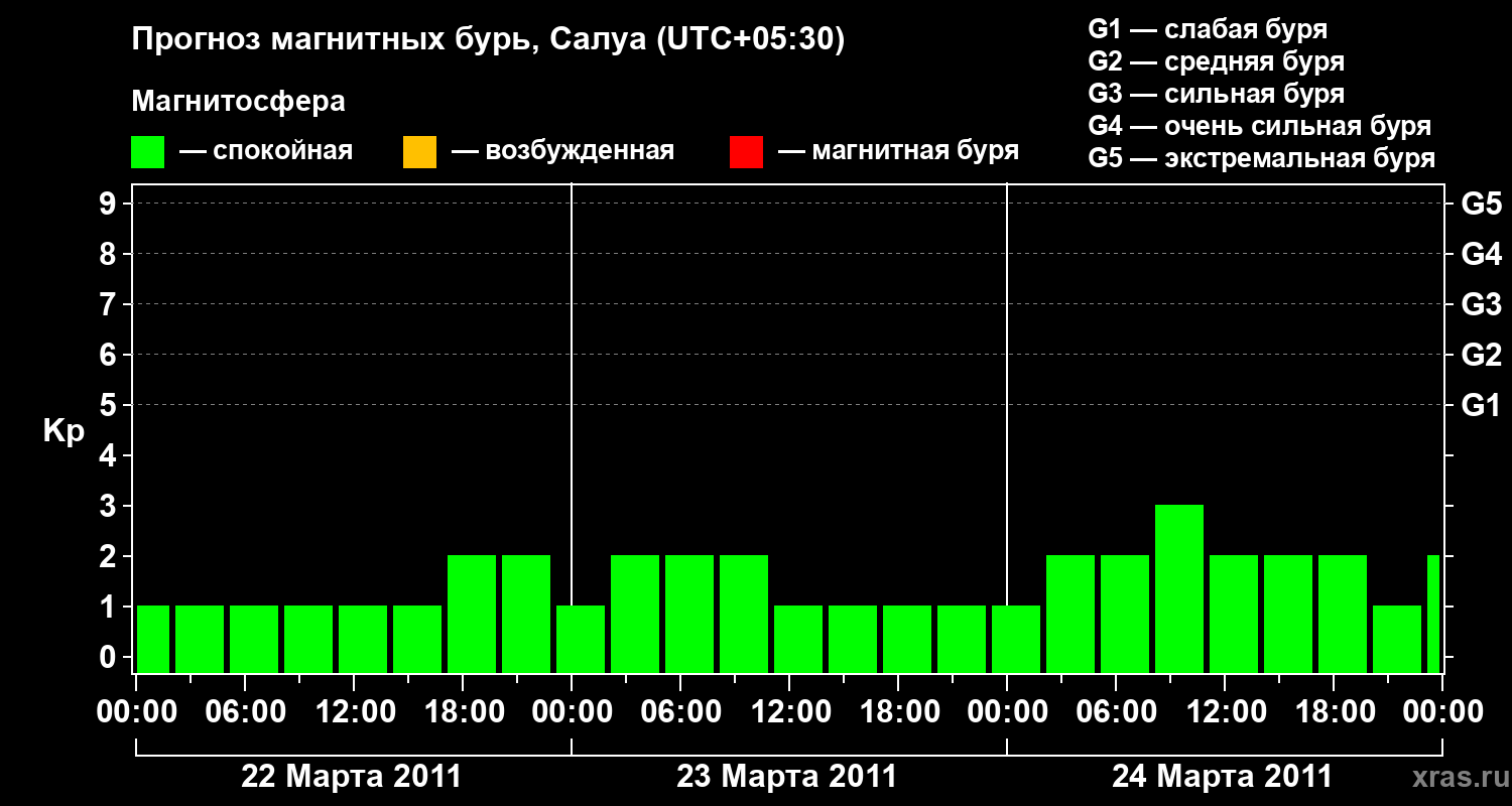 Прогноз магнитных бурь в Салуе — 22 марта 2011 года