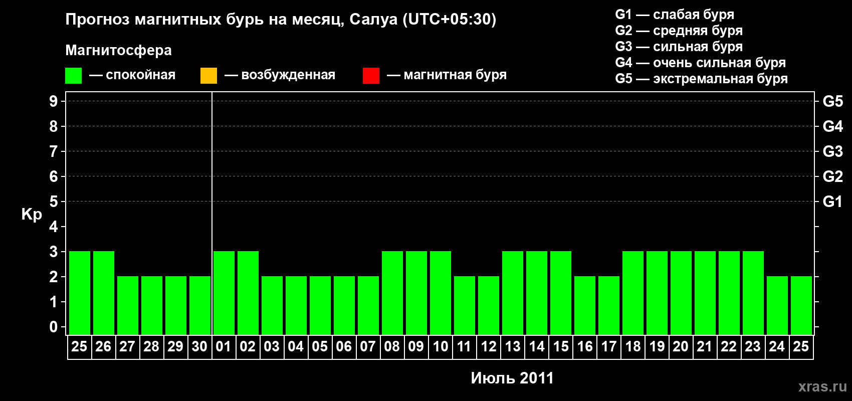 Прогноз магнитных бурь в Салуе — 25 июня 2011 года
