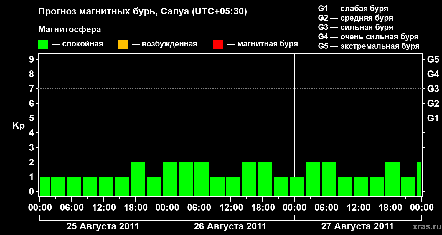 Прогноз магнитных бурь в Салуе — 25 августа 2011 года