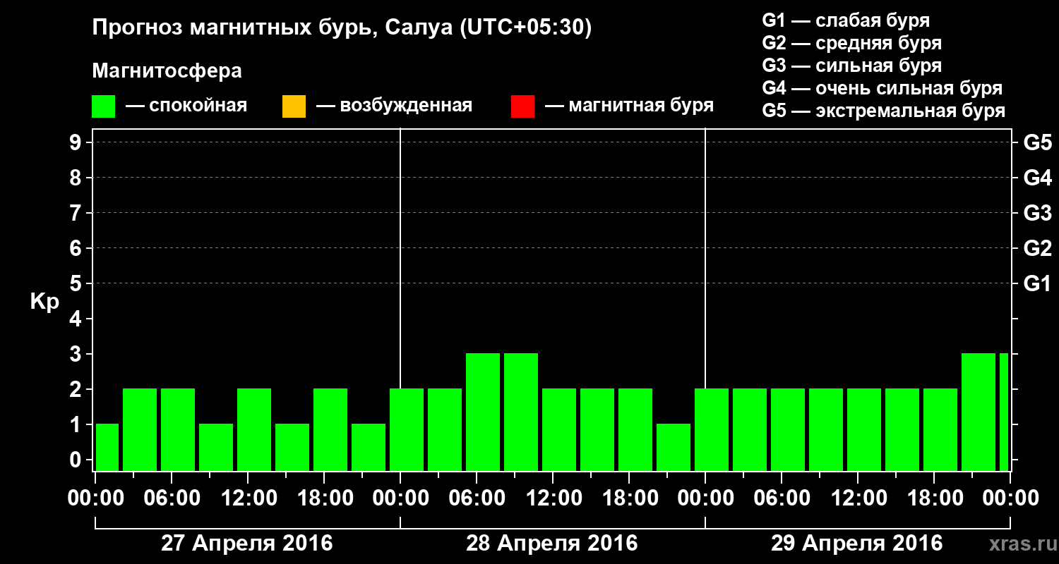 Прогноз магнитных бурь в Салуе — 27 апреля 2016 года