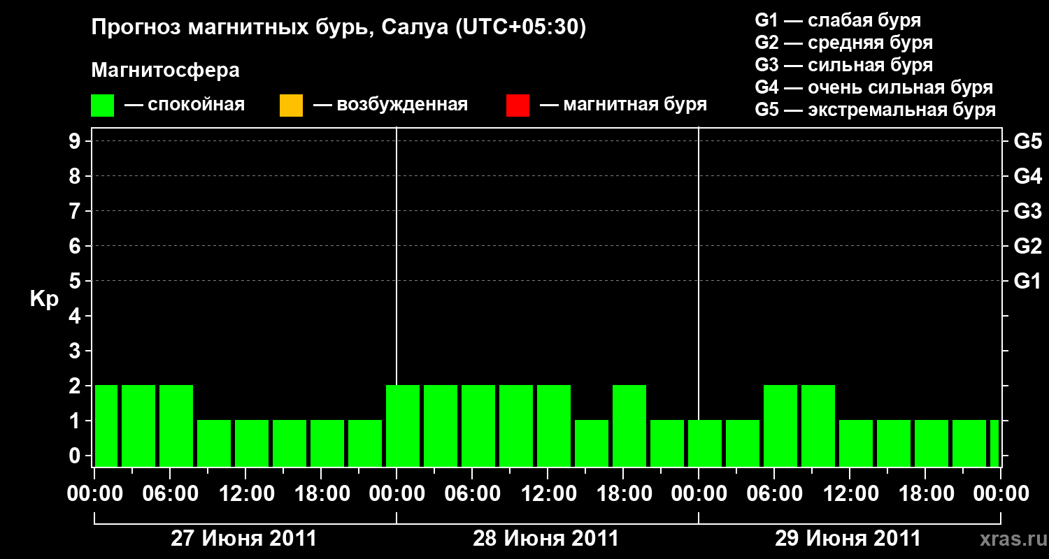 Прогноз магнитных бурь в Салуе — 27 июня 2011 года
