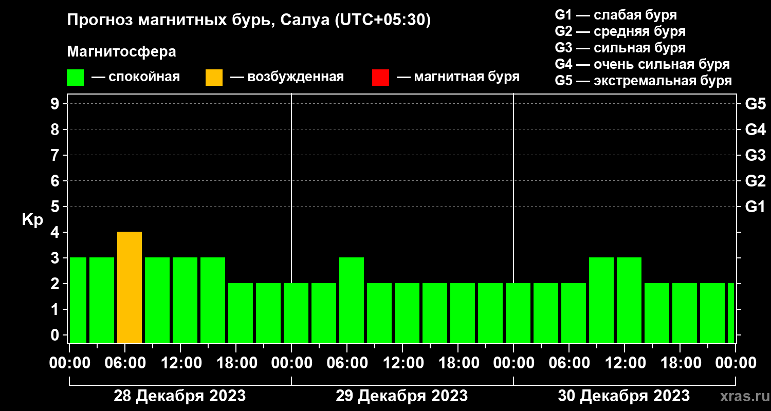 Прогноз магнитных бурь в Салуе — 28 декабря 2023 года