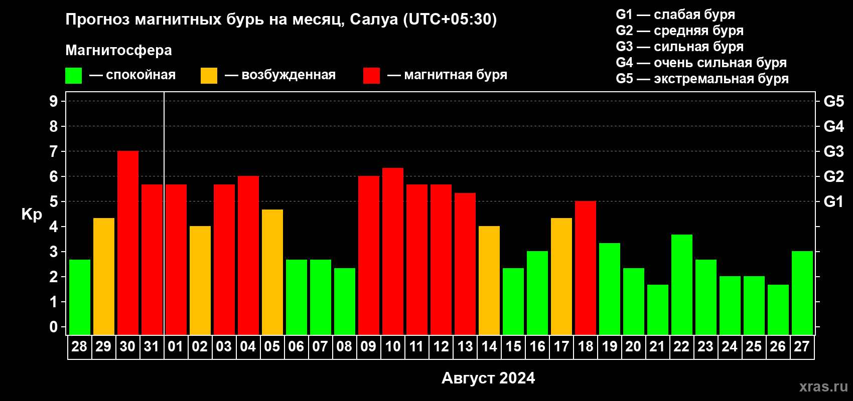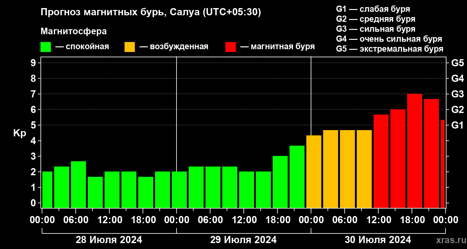 Прогноз магнитных бурь в Салуе — 28 июля 2024 года