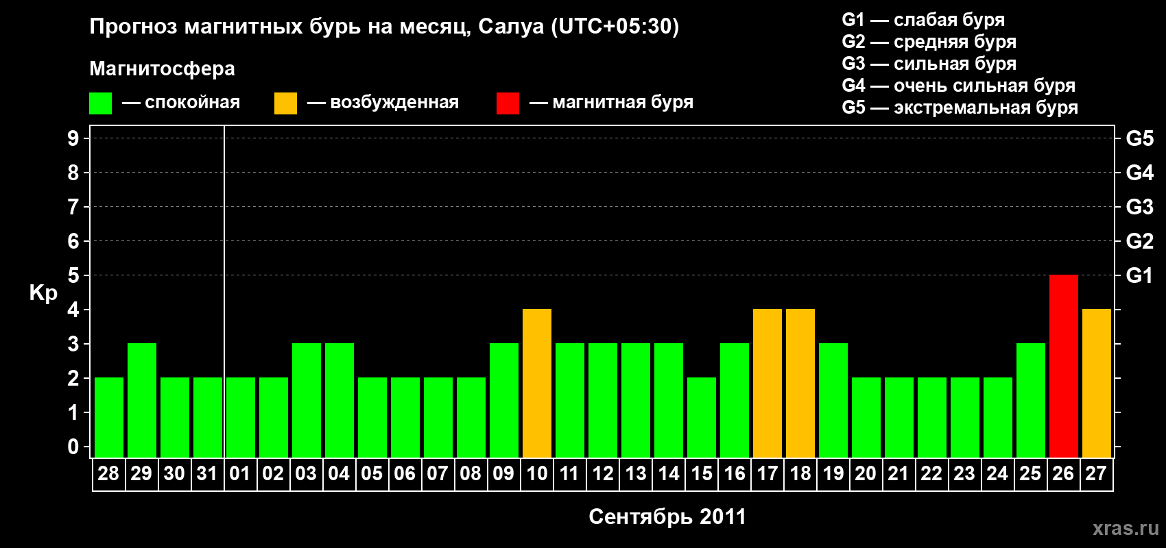 Прогноз магнитных бурь в Салуе — 28 августа 2011 года