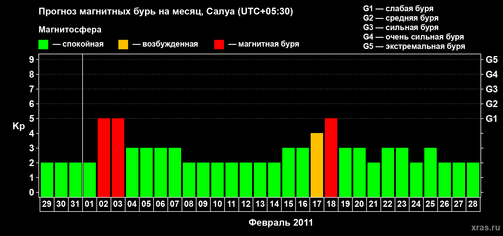 Прогноз магнитных бурь в Салуе — 29 января 2011 года