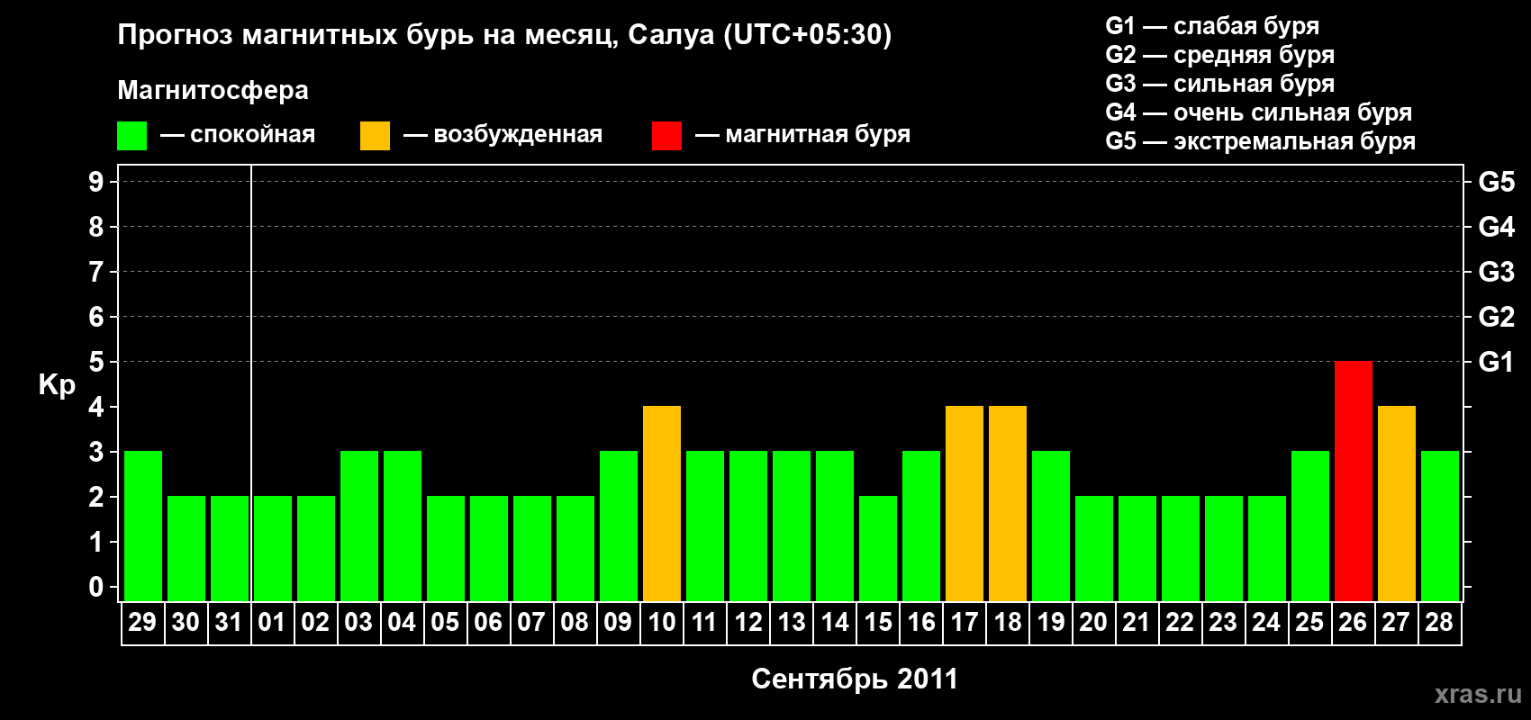 Прогноз магнитных бурь в Салуе — 29 августа 2011 года
