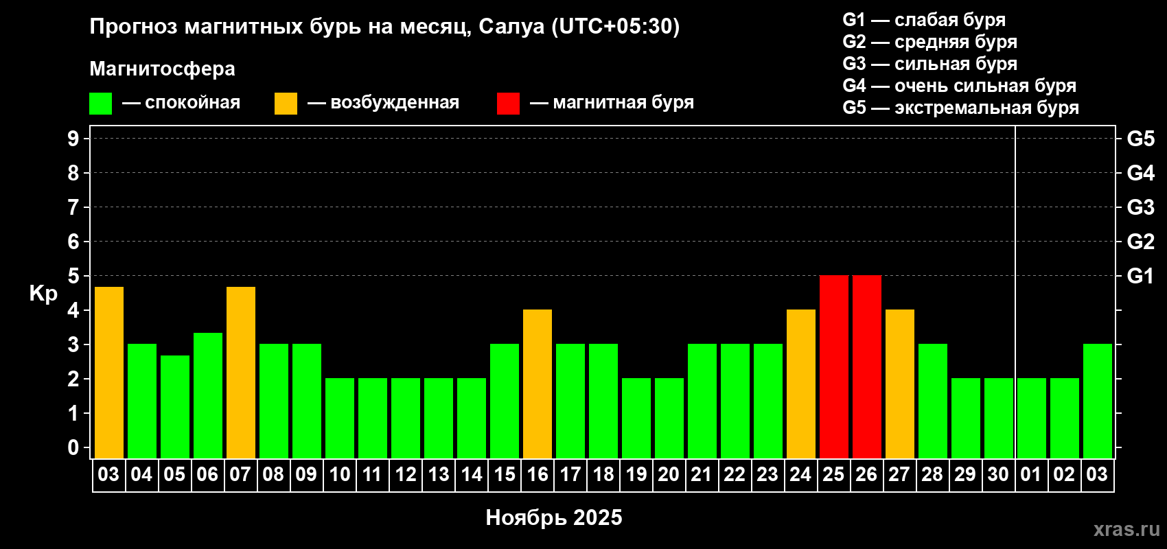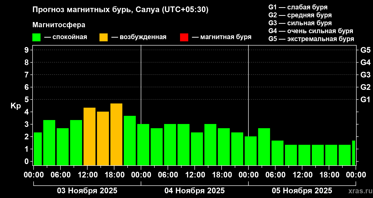Прогноз магнитных бурь в Салуе на 3 ноября 2025 года