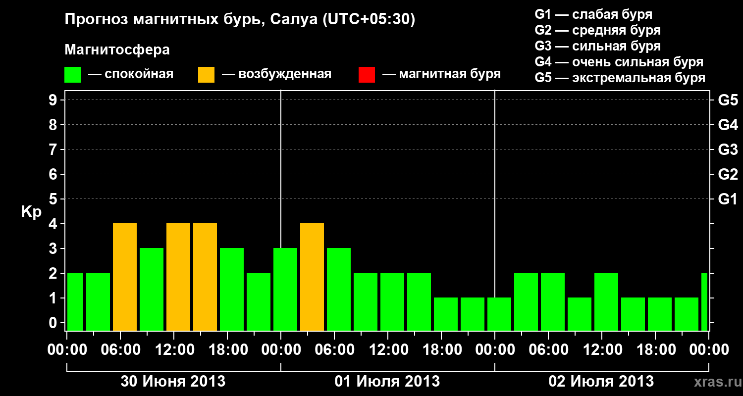 Прогноз магнитных бурь в Салуе — 30 июня 2013 года