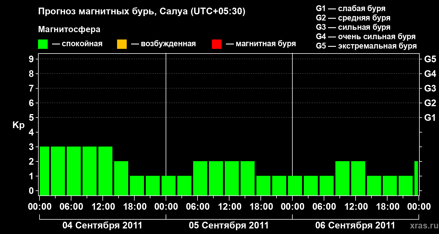 Прогноз магнитных бурь в Салуе на 4 сентября 2011 года