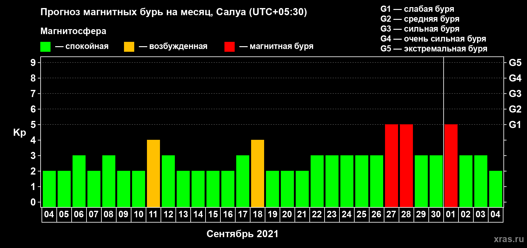 Прогноз магнитных бурь в Салуе — 4 сентября 2021 года