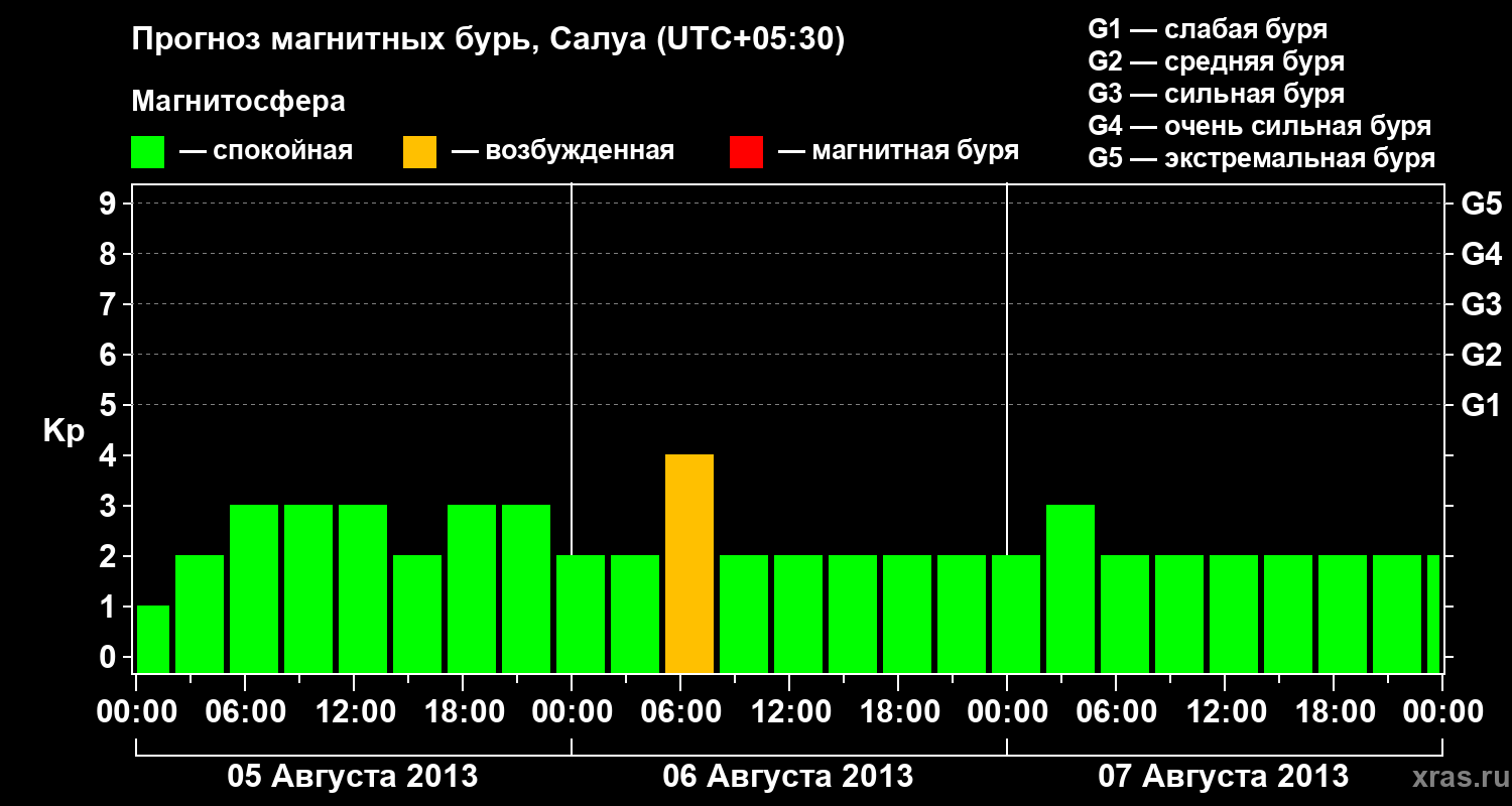 Прогноз магнитных бурь в Салуе — 5 августа 2013 года