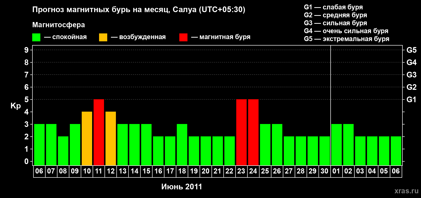 Прогноз магнитных бурь в Салуе — 6 июня 2011 года