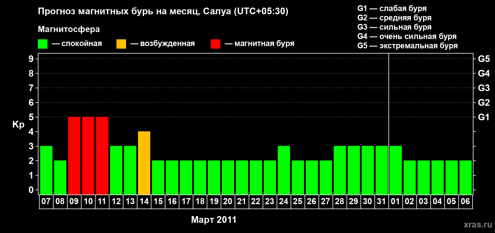 Прогноз магнитных бурь в Салуе — 7 марта 2011 года