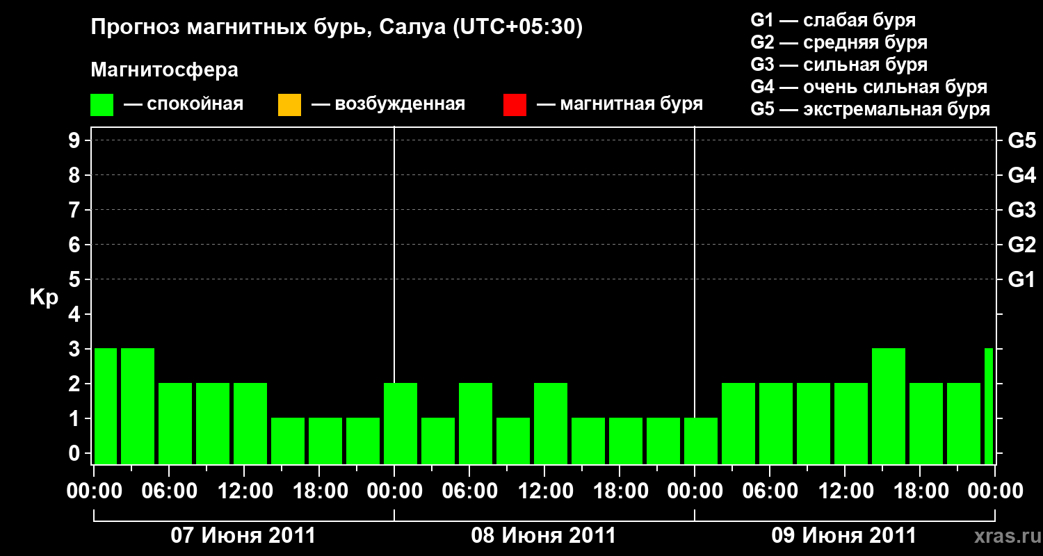 Прогноз магнитных бурь в Салуе — 7 июня 2011 года