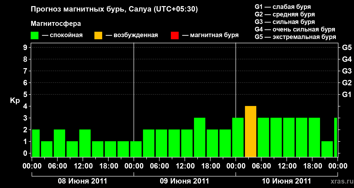 Прогноз магнитных бурь в Салуе — 8 июня 2011 года