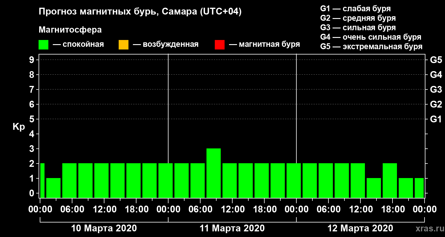 Прогноз магнитных бурь в Самаре — 10 марта 2020 года