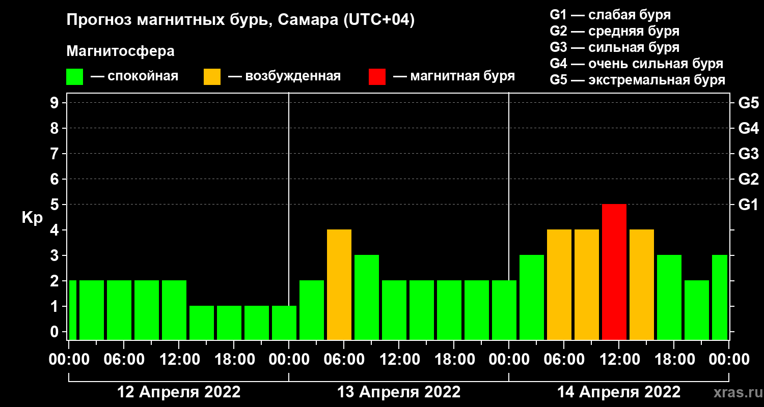 Прогноз магнитных бурь в Самаре на 12 апреля 2022 года